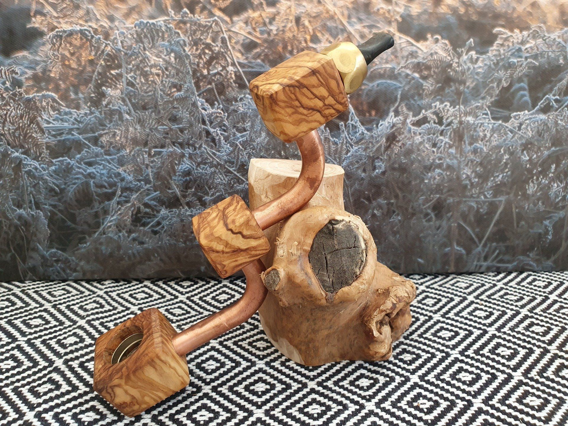 Designer Pfeifen, Olivenholz mit Zwischenstücken, Black Mamba,